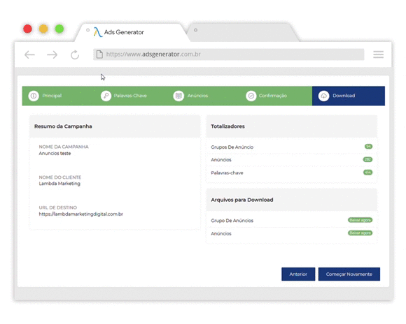 Pré-configure a campanha no Google Ads, e importe as campanhas geradas através do Google Ads Editor